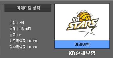 - KB스타즈는 3승 5패로 5위에 랭크되어 있습니다.