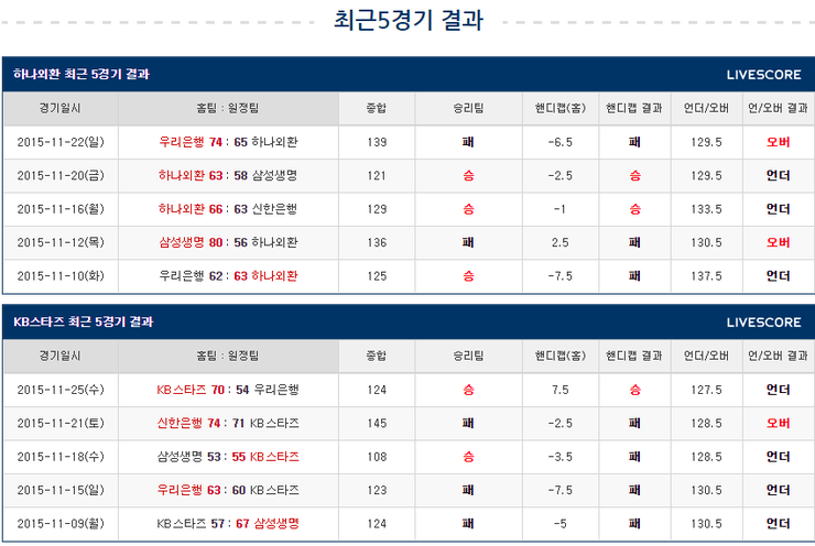 * KEB하나은행 VS KB스타즈 (2015.11.27 19:00)