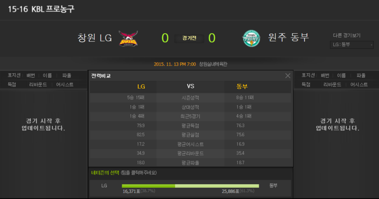 홈팀 창원LG는 직전 경기 11월(수요일) 홈에서 삼성을 상대로 101-63 승리를