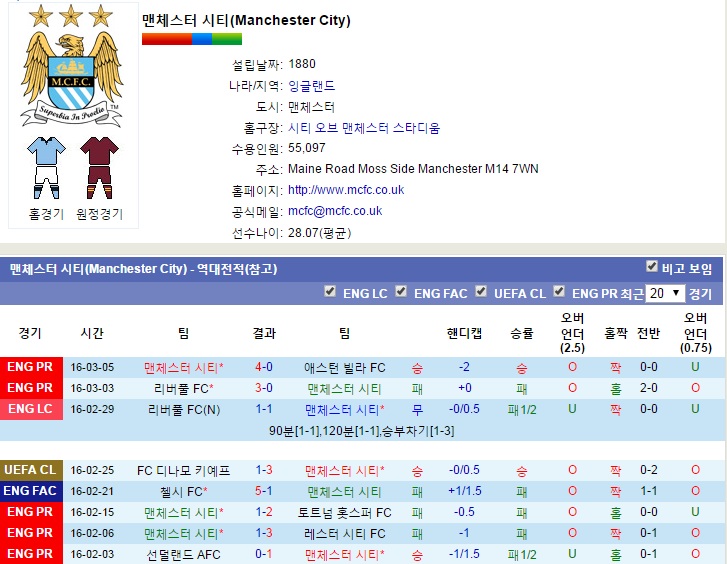 거뒀습니다. 그전 경기에서는 리버풀에 3-0으로 패하는등 최근들어 기복이 심한 맨시티기