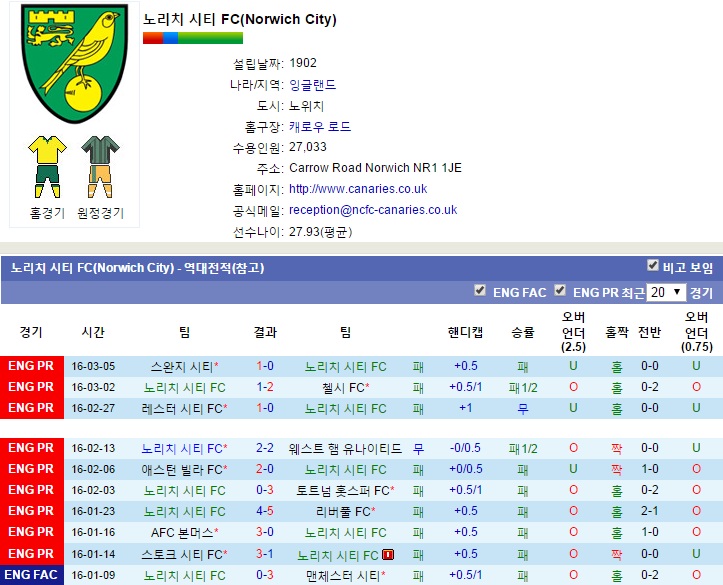 프리미어리그 29라운드 경기가 어제에 이어 있습니다. 먼저 노리치를 살펴보면 최근5경기