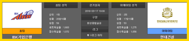 3월17일 KOVO IBK기업은행 VS 현대건설 분석